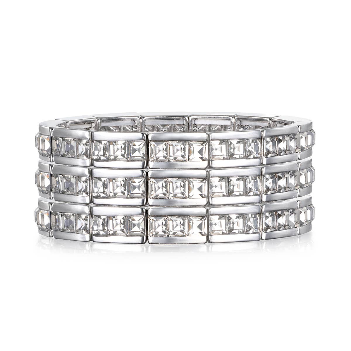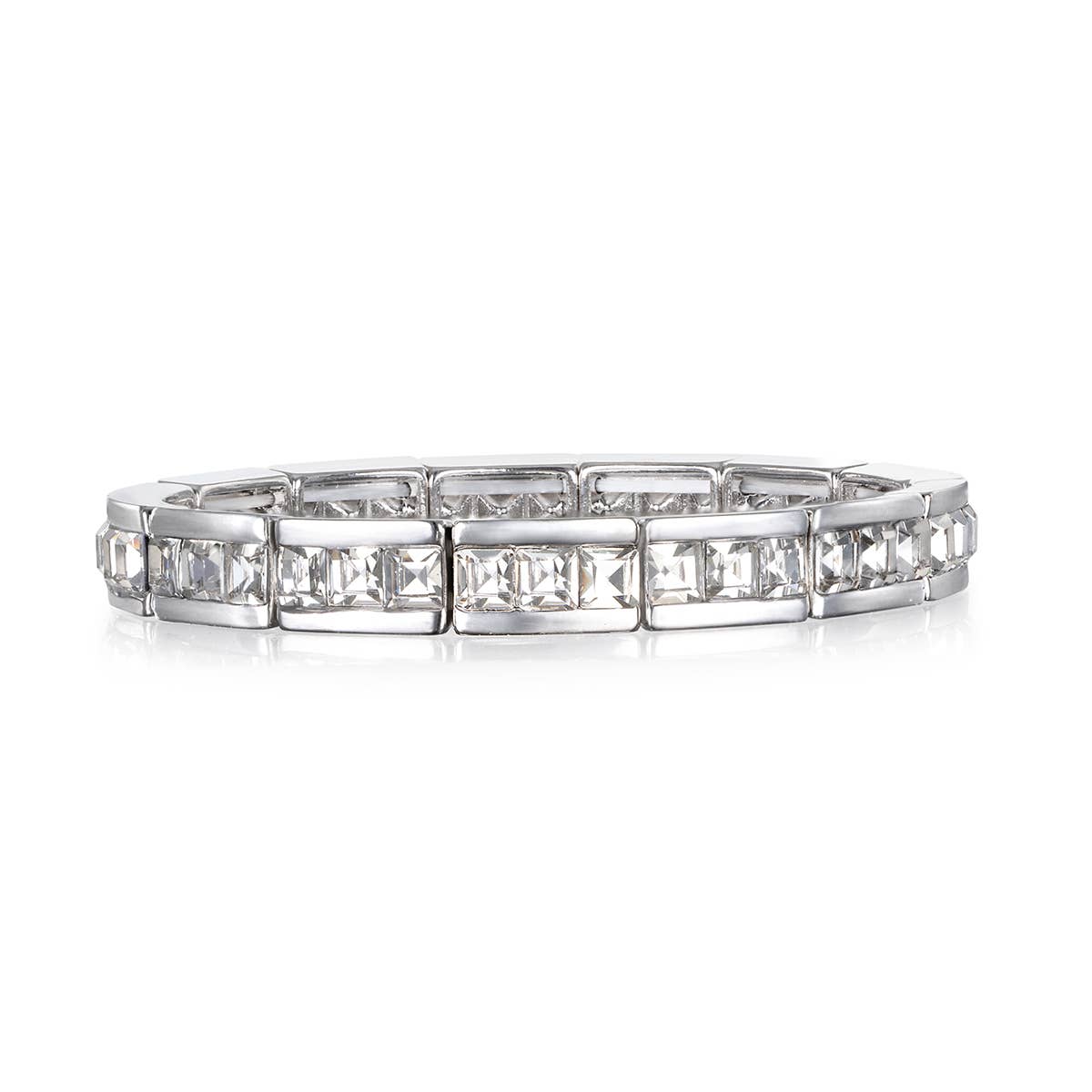 Your favorite tennis-style bracelet in a stretch design. Hand crafted with sparkling crystals in stretch cord, one size fits all. Stunning worn solo, but designed for stacking! Each bracelet is sold individually. 2" opening that comfortably stretches to 4.75."