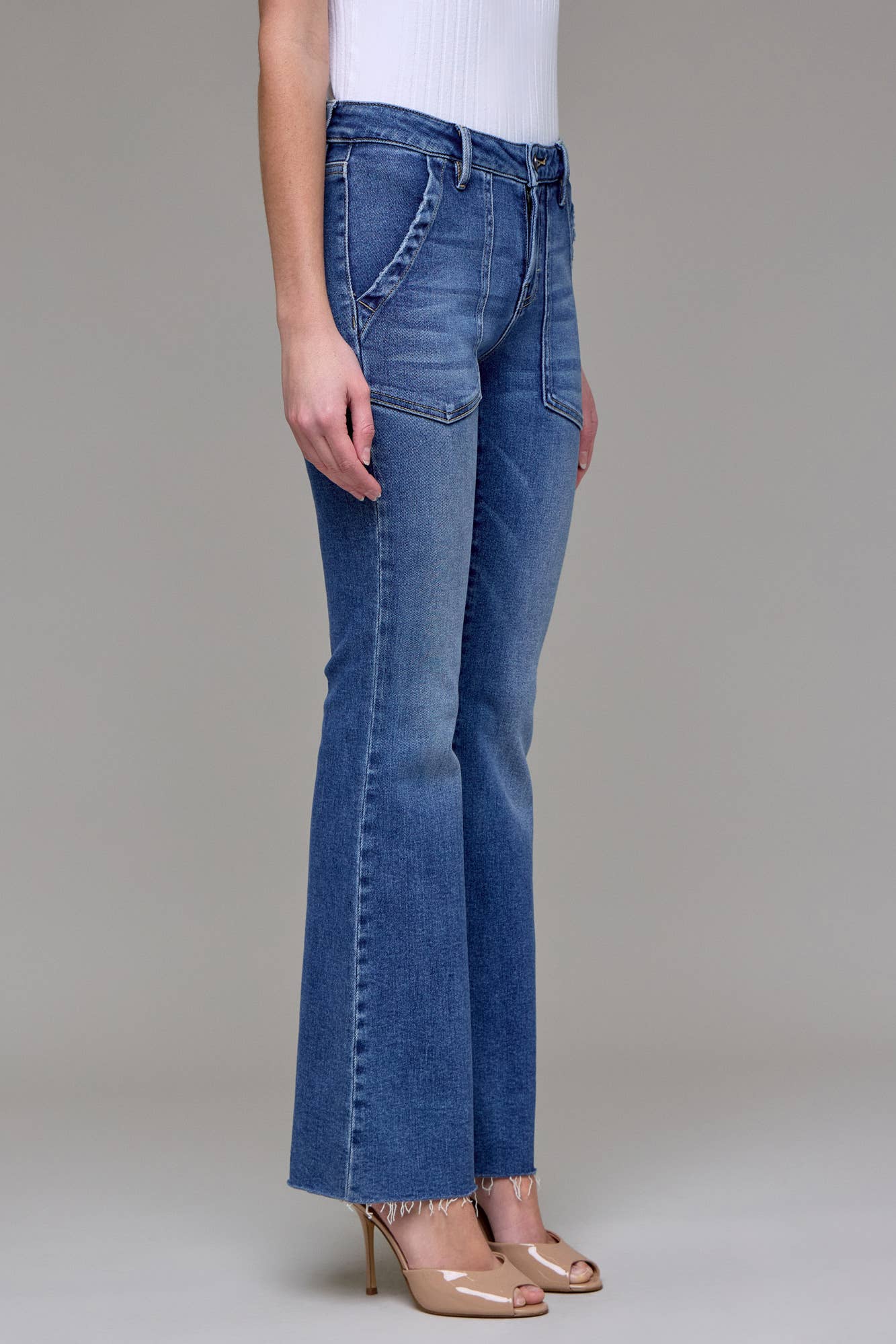 Model is wearing a size 26. Measurements are based on a size 26. 93% Cotton, 5% Poly, 2% Spandex Rise – 9” Inseam – 31”