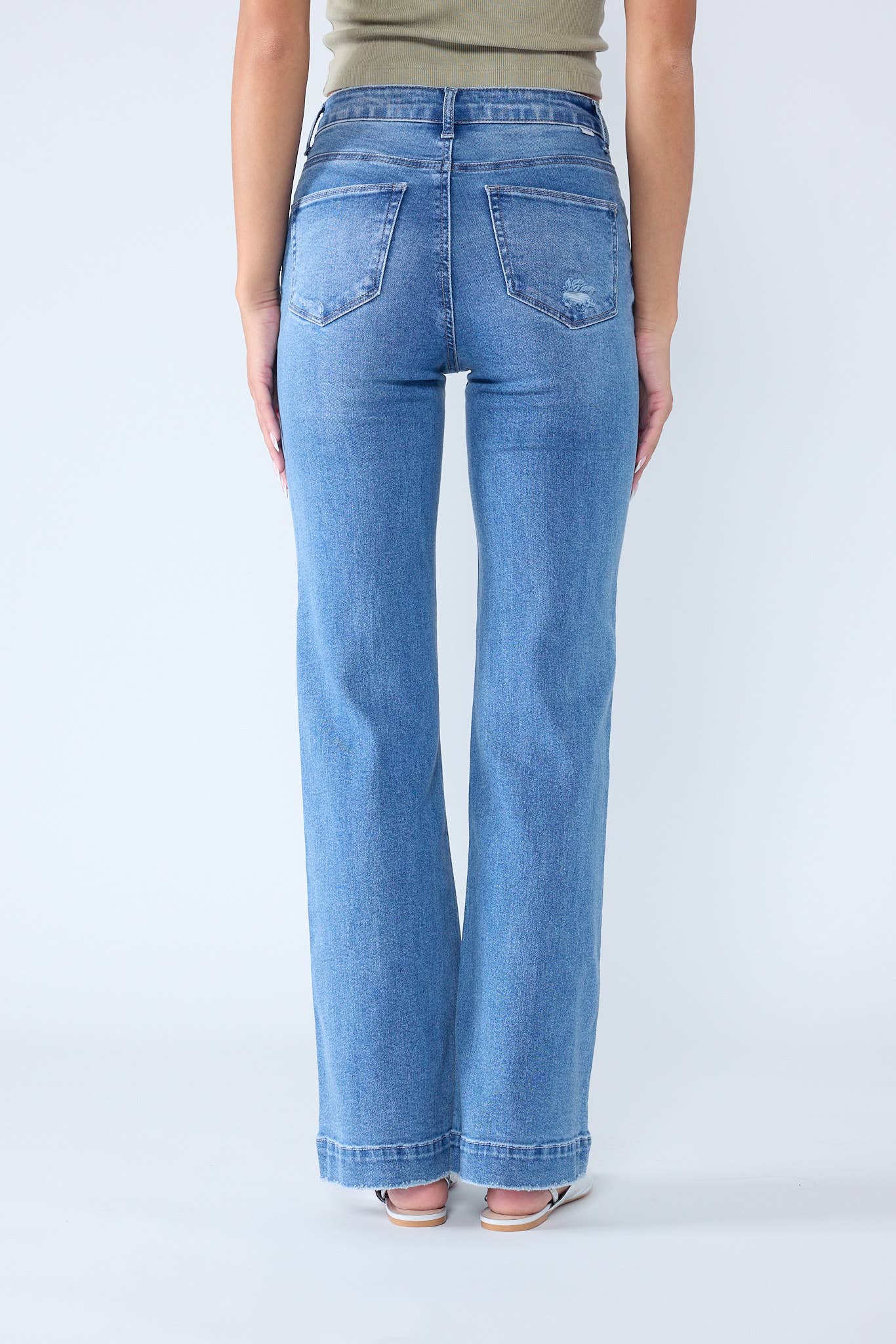 Stone wash with hand sanding, whiskers, tacking, grinding, destructions.