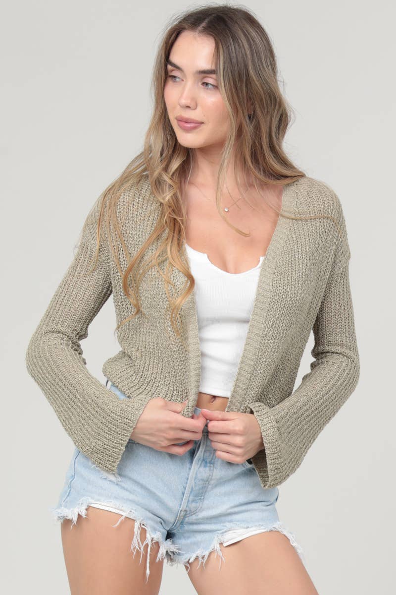A lightweight flare sleeve cardigan by ANGIE. This solid-colored cardigan, designed for the junior, is perfect for a day party. The long sleeves add a touch of classic elegance, while the flare design gives it a unique twist. With ANGIE, you're not just wearing a cardigan, you're embracing a global lifestyle deeply rooted in bohemian and vintage influences.