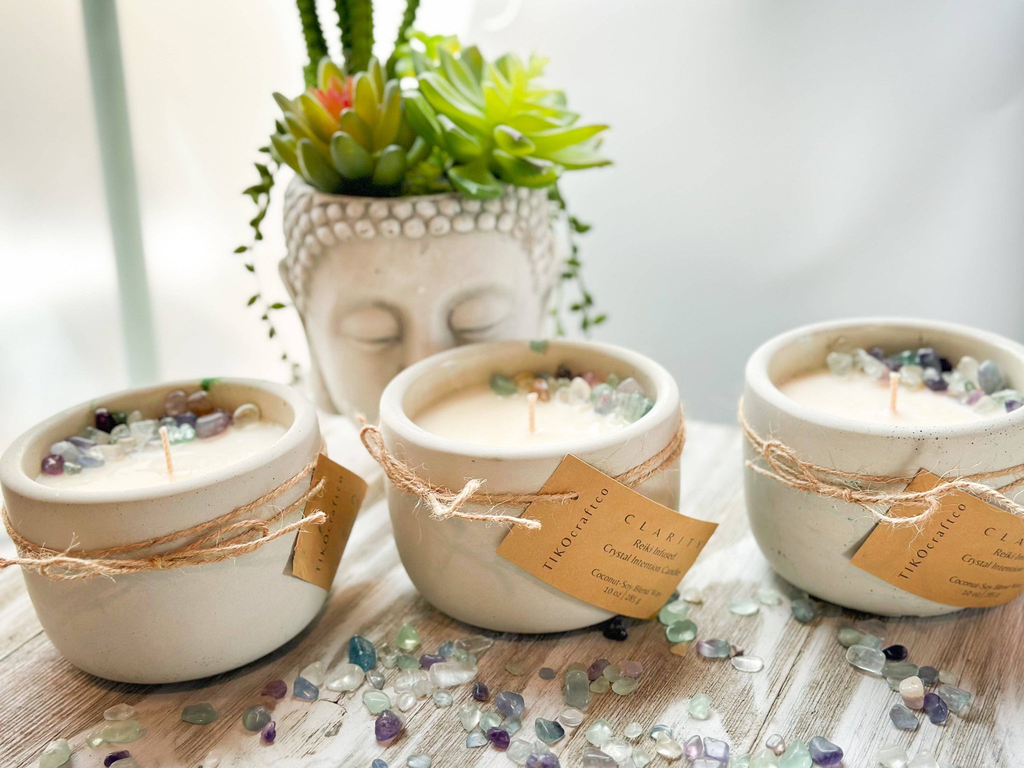 CLARITY - Reiki Infused Crystal Intention Candle.