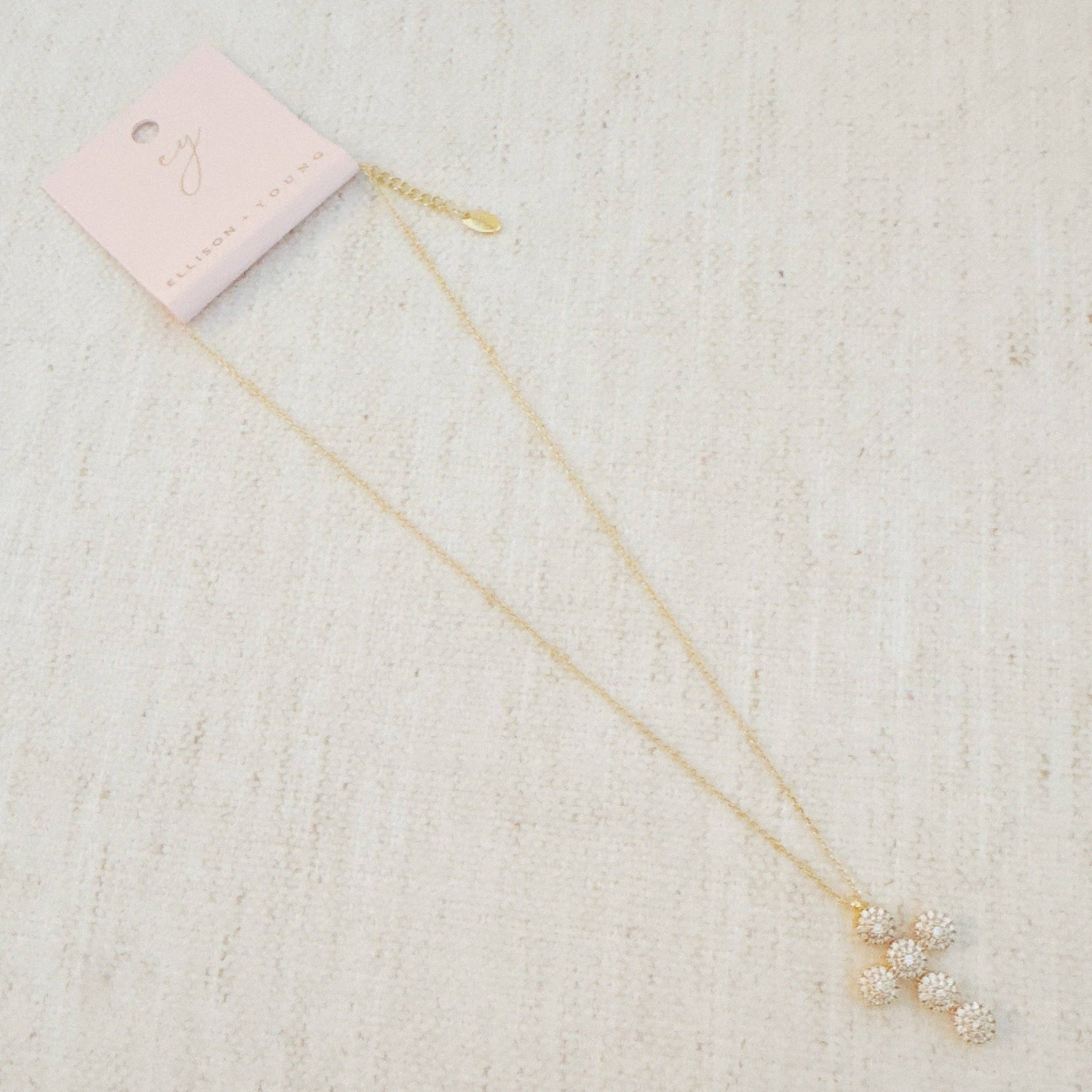 Add a touch of modern edge with the Dainty Sparkle Cross Necklace. This elegant piece features a lovely sparkle that catches the eye, complemented by a modern dainty cross design. Perfect for enhancing any outfit with a hint of refinement and charm.