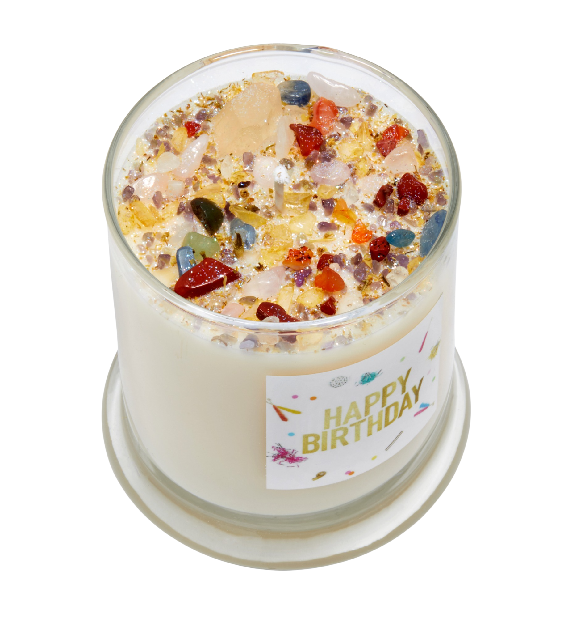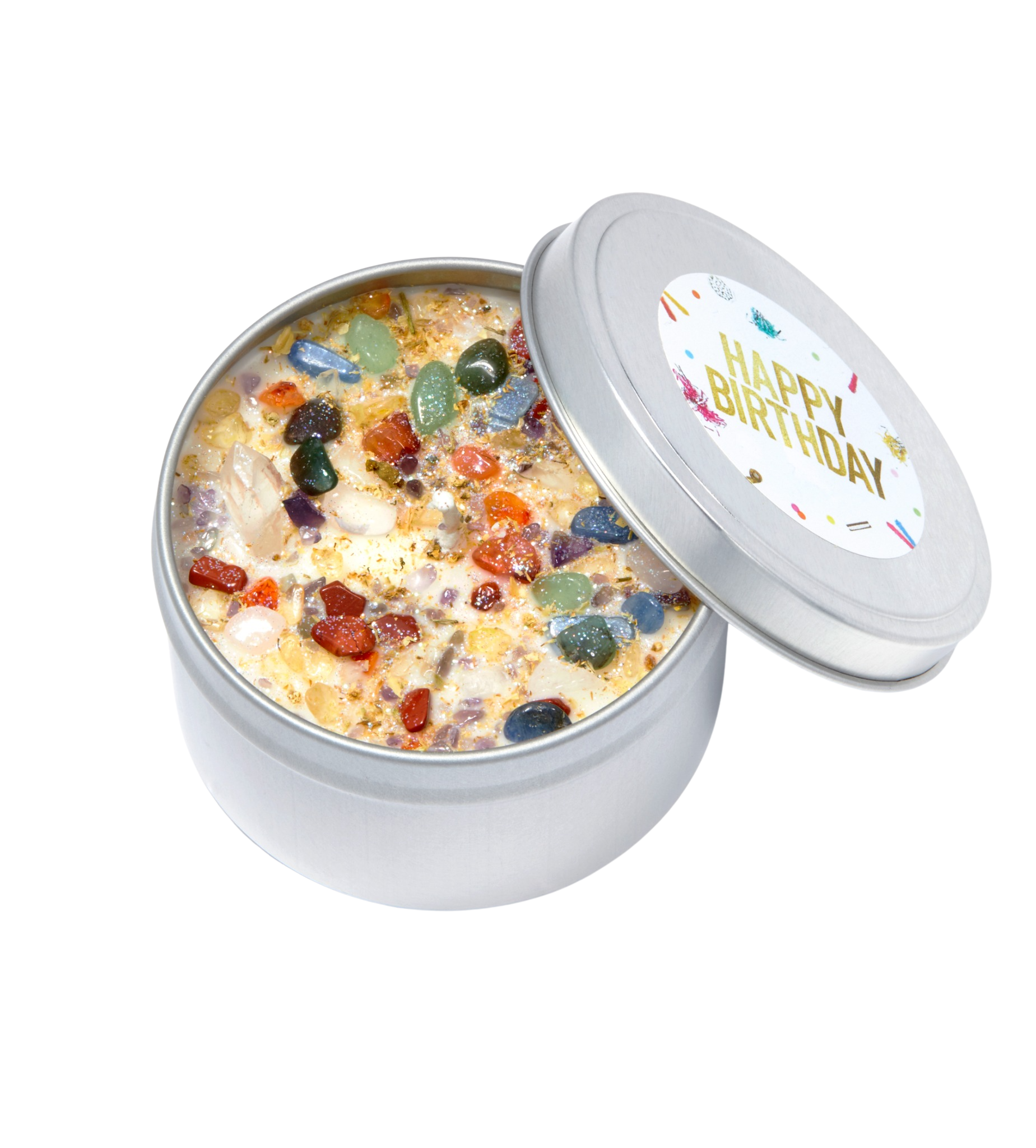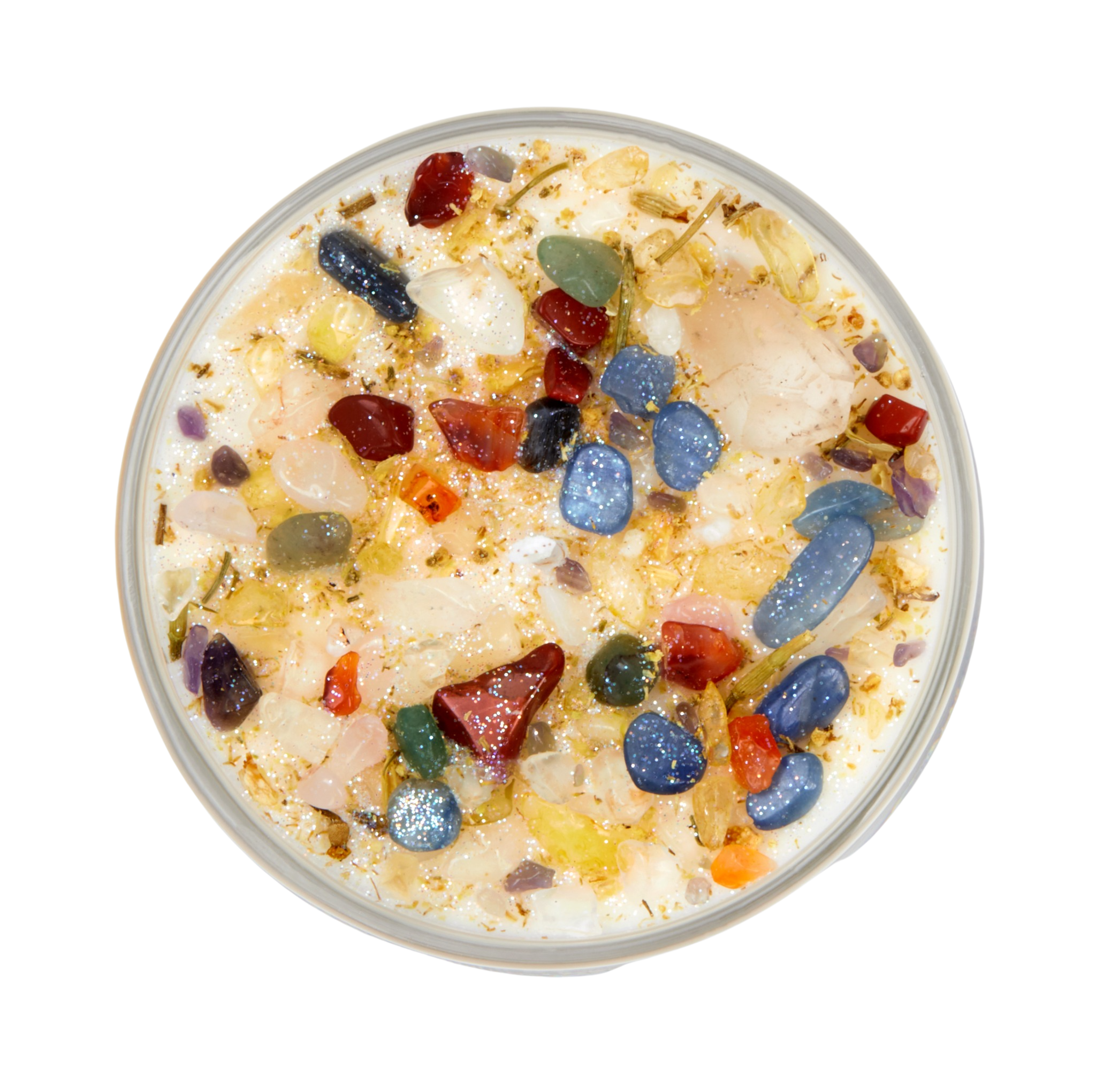 100% Eco-soy wax candle that is handmade and hand poured with a combination of Natural & Essential oils, lead-free cotton & paper wicks, natural crystals, dried flowers & herbs.