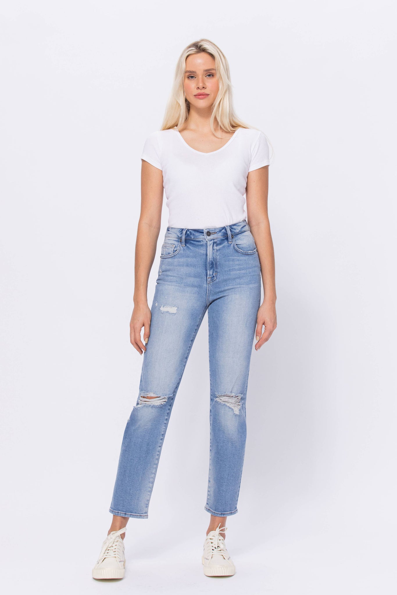 Model is wearing a size 26. Measurements are based on a size 26. 93% Cotton / 5% Poly / 2% Span Front Rise – 11” Inseam – 28”