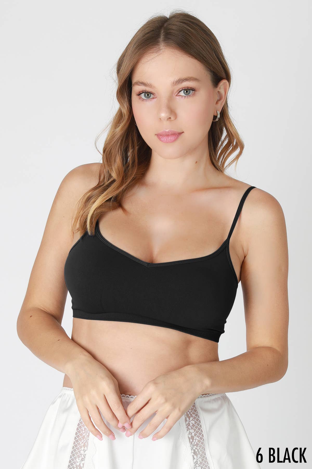 The bralette is characterized by a charming sweetheart neckline that gracefully contours the bust, creating a feminine silhouette. Crafted from a soft jersey fabric, the bralette ensures a snug, comfortable fit, ideal for everyday wear.