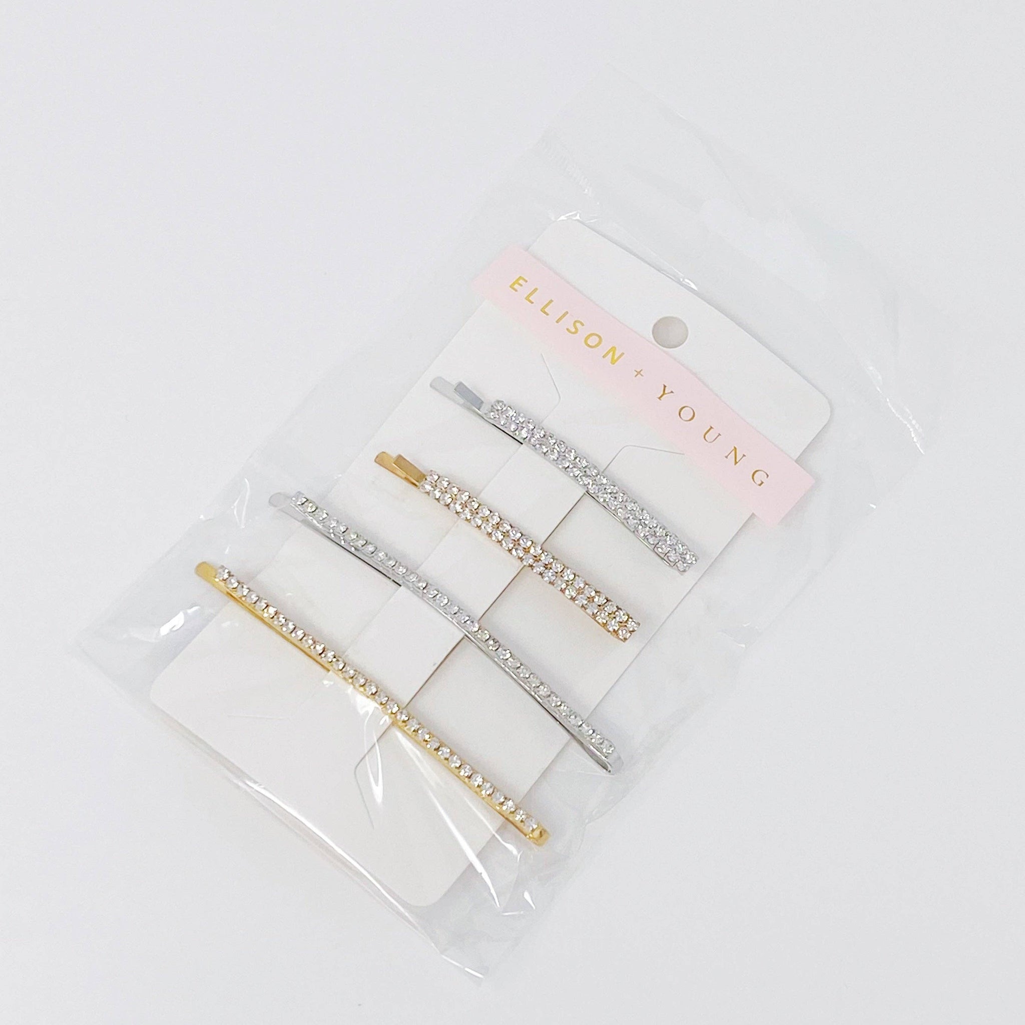 Set of 4 simple but shiny bobby pins. Slim and sparkle! Short and long shapes, gold and silver tones well mixed! Lots of different ways to style it!